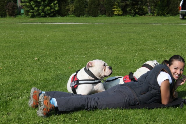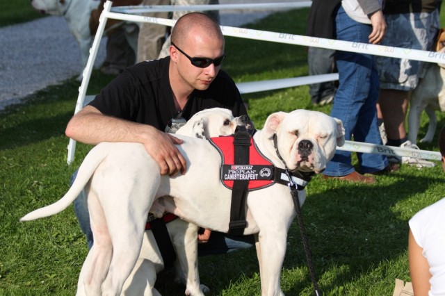 Součástí byla také prezentace canisterapie, kterou slečna Irena Minaříková provádí s americkými buldoky viz www.saintanthony.cz